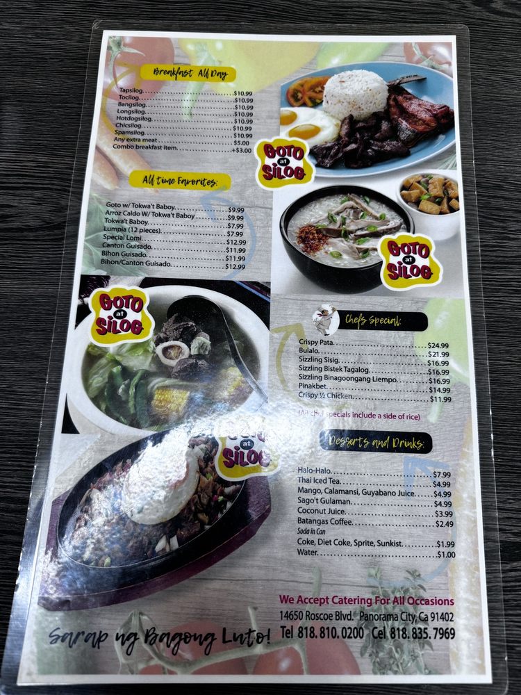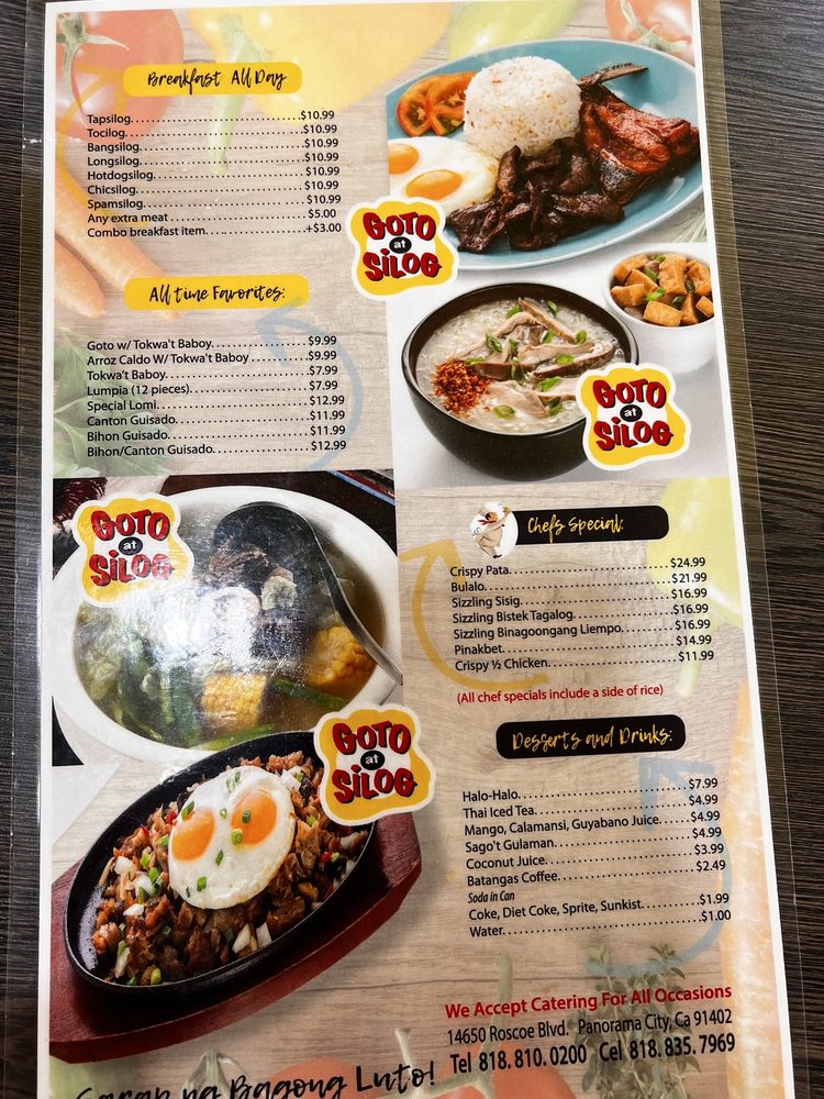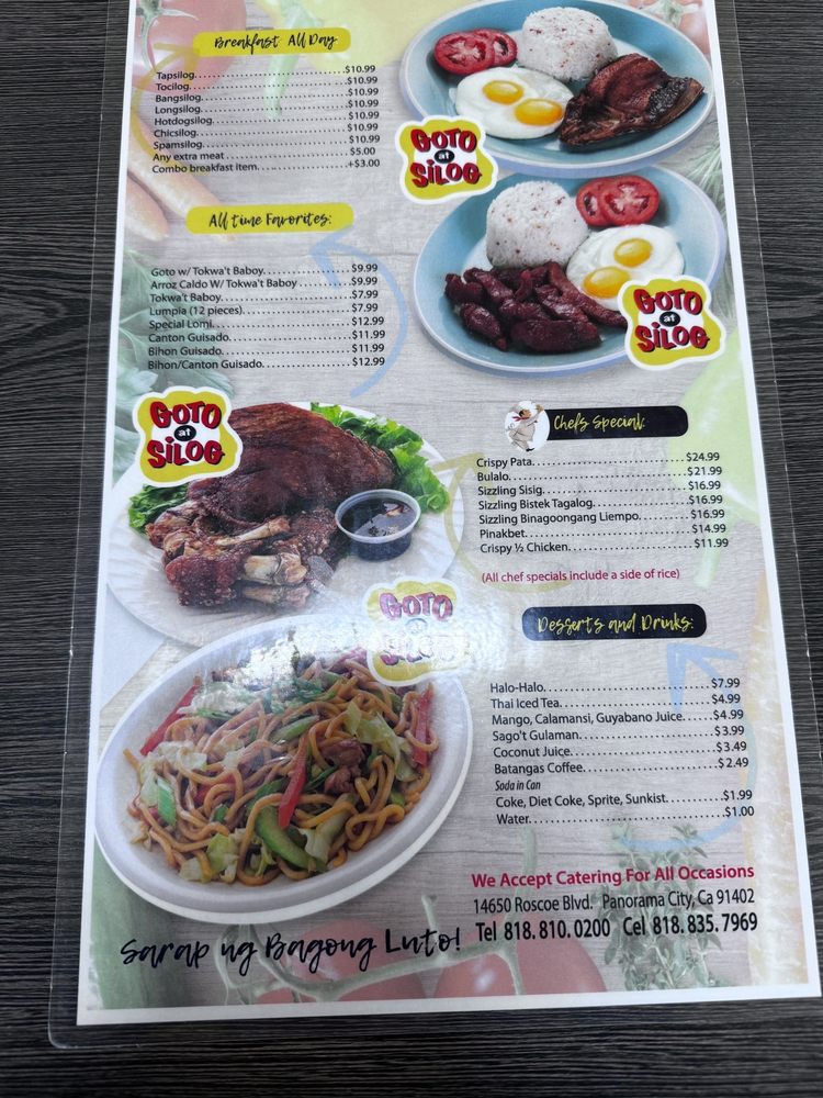 Welcome to Goto at Silog, where authentic Filipino flavors come alive! Nestled in Panorama City, this vibrant eatery invites you to explore a menu filled with traditional delights, perfect for any meal of the day—from breakfast to dinner. Specializing in silog dishes, Goto at Silog serves up a variety of satisfying choices, including their signature goto, a comforting rice porridge that warms the soul.